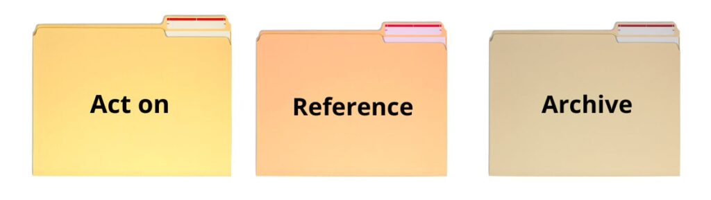 - Archive: things we need to keep for the long term, often legal or financial in nature. You would choose Archive/File for anything requires no further action on your part.