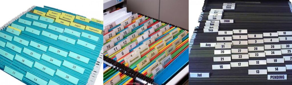 How to organize actionable paper efficiently and effectively? The organizing tool we are going to use is called a ‘tickler system’.