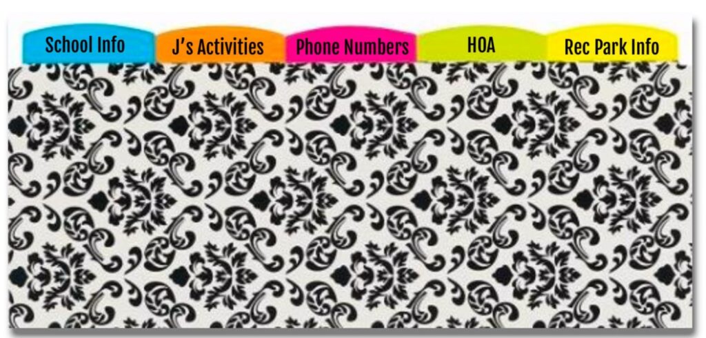 School Information – Store school handouts you reference regularly in a section of your binder. Include menus, calendars, school phone numbers, teacher contact information, snow schedules, bus routes and information about after school programs.